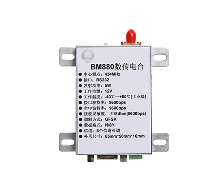 BM880高速率無線數(shù)傳電臺,是一種遠距離無線數(shù)據(jù)傳輸產(chǎn)品,它體積小,金屬外殼,屏蔽性能好,抗干擾性強,內(nèi)部采用集成功放,TCXO等高可靠性器件,內(nèi)置看門狗,產(chǎn)品的穩(wěn)定性及可靠性極高。采用先進的GFSK調(diào)制方式,提高了頻率資源的利用率和產(chǎn)品的抗干擾能力,半雙功的通訊方式,能方便為用戶提供雙向的數(shù)據(jù)信號傳輸、檢測和控制。收發(fā)時間小于18mS(9600bps通訊數(shù)率),適時性強。適合用于無線數(shù)據(jù)采集、工業(yè)控制、油田測控、水紋監(jiān)測等重要領(lǐng)域。
